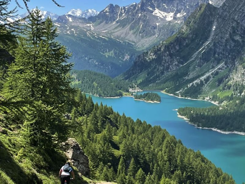 Escursione fuori porta di livello alto dal carattere panoramico e esplorativo. Il grande Est è un giro di grande soddisfazione che si sviluppa negli alpeggi che sovrastano la piana dell’Alpe Devero offrendo straordinari contrasti cromatici tra le azzurre acque di laghetti alpini e le circostanti montagne.